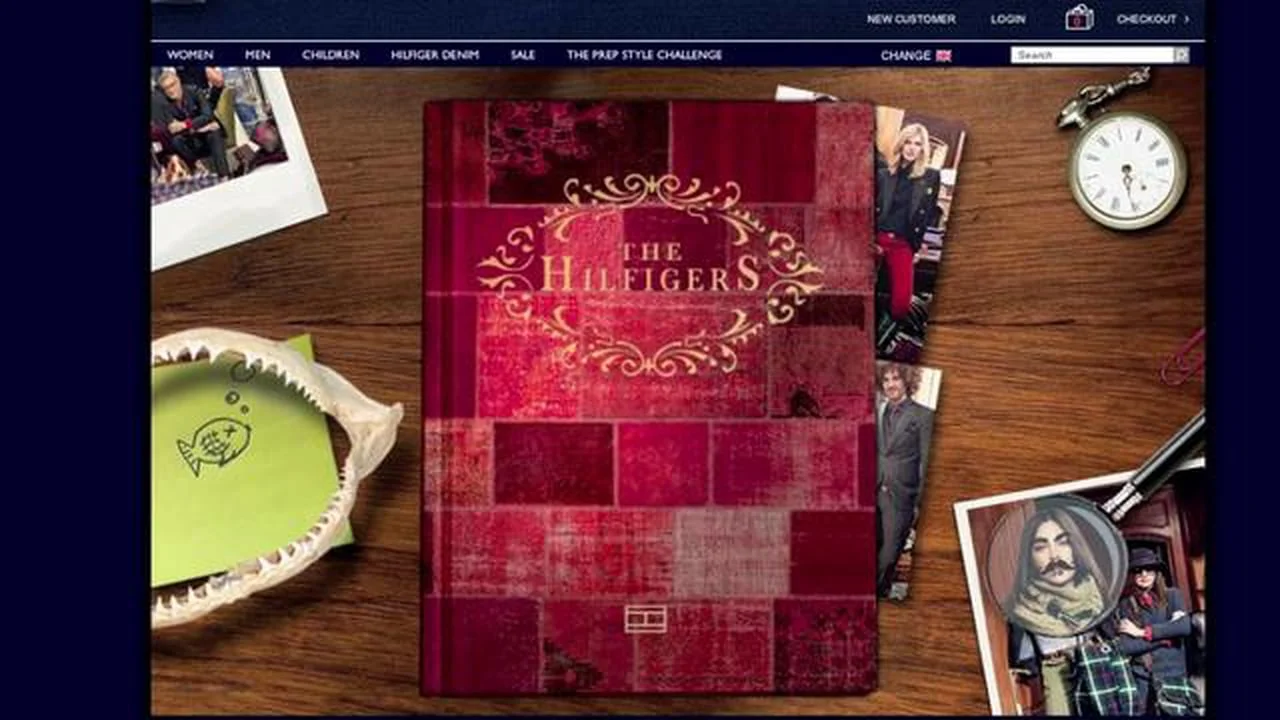 The album is interactive, with each page dedicated to a different member of the Hilfiger family. Notes can be opened and characters explored, all while outfits are selected and shopped.